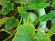 おはようございます我が家の屋上、家庭菜園&ベランダ菜園へようこそ~カボチャ<ウリ科>追肥用の土から~生まれた・・我が家のカボチャそう~ごみカボチャくんは、さすが野生児・・すくすく育っています 今じゃ~どこから・・どこまでがカボチャの苗なんだかわかりませんね定植の様子はコチラカボチャ苗 どうでしょうか~これがスーパーで買ってきたカボチャの種から~育っているなんて信じられませんよね農園主の格言捨てれば・・ゴミ。育てれば・・カボチャなんて。。ねっ質問にお答えしますカボチャって、グングン伸び放題で、場所とりませんかここで・・何件か質問がありましたので・・プランターでカボチャ栽培をしている方で、よく空中栽培や支柱をガッチリ組んでいる方がいますが・・私、農園主はコレがヘタだから・・支柱なんて立てません(立てられません・・)そこで・・場所だけ・・決めて・・敷地内栽培外へ出たら~もどしてあげて・・決められた場所をグルグル~梅雨のこの時期は・・特に湿度が高いので・・ウドンコ病などに注意ですねだから・・ こ~んな葉っぱを見つけたら~即刻取り除きます風通しを確保して・・清潔に育てます。そして~忘れてはいけない受粉のお仕事。「実がつかないの~」なんて、のんびり言ってはいられませんからね~。 前日にこんなカボチャを見つけたら~、さあ~準備です次の朝はちょっぴり~早起きして・・人工授粉をしてみましょう~雄花 雌花 雄花:つけ根がふくらんでいない。雌花:つけ根がまあるくふくらんでいる。その日に咲いた雄花と雌花を見つけたら~ 雄花を摘み取り~こんな風にして雄花の花粉をつけやすいように、雄しべを、むき出しにしちゃいます。(晴れた日の~9時くらいまでには・・作業を終わらせて) 雌花の柱頭に、こすりつけるように・・丁寧に・・トントン~グリグリ~ 無事、受粉が成功すると~ 受粉した雌花はつけ根が膨らんできますよそして・・追肥収穫するころには・・(昨年の我が家の収穫の様子より) こんな感じに・・葉っぱは、ほとんど無い状態かも。天候の悪い日が続いていますが・・頑張れ野菜たち「頑張って、野菜つくれよっ」と応援していただける皆様、ランキングに参加しています。ポチっとクリックをおねがいしますいつも皆様の応援に感謝しております。そして毎日の励みとなっています にほんブログ村人気ブログランキングへblogramランキング参加中! 打木赤皮甘栗かぼちゃ 3.5号ポットしっとりあま~い♪西洋カボチャですオレンジ色の鮮やかな色彩です!打木赤皮甘栗かぼちゃ 3.5号ポット 【加賀野菜】日向かぼちゃ 3.5号ポット実が柔らかく、色鮮やか!日本料理に欠かせない高級食材です!!日向かぼちゃ 3.5号ポット 【九州野菜】