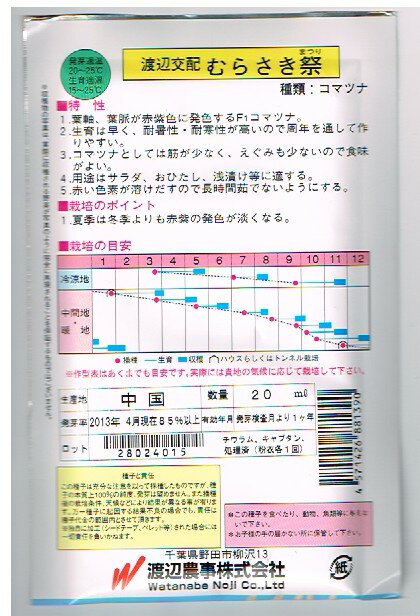 渡辺農事が開発した品種で、葉や軸が赤紫色になる珍しい小松菜。