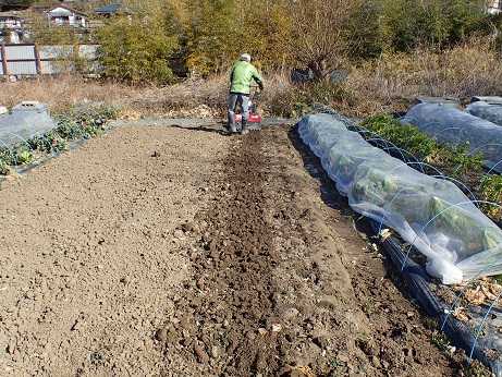 芽キャベツの収獲&お片付け後、耕運機をかけてもらいました~!!