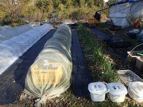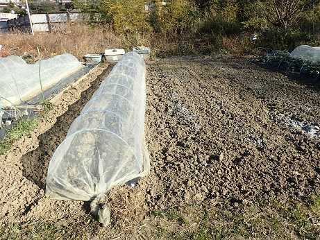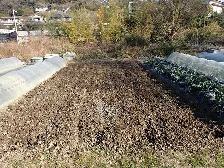 前作、シュンギク&ミズナ畝とカブ&コマツナ畝を片づけたのが、 1月初旬頃