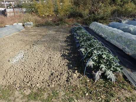 (シュンギク&ミズナ苗のお片付け地× 秋冬ブロッコリー苗植え付け地)
