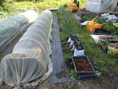 (春夏苗の育苗地× 九条ネギ苗&テーブルポテト袋栽培)