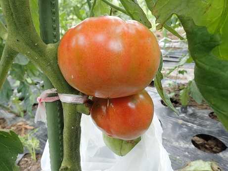 大玉トマトが色づき始めたのを確認&雨除けしたのは~ 6月下旬頃