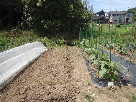 (エダマメお片付け地 × 第2弾白ナス苗植え付け地)