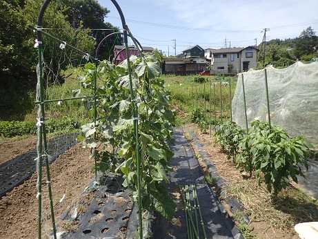 キュウリの支柱立て&ネット張りを行ったのは~ 5月上旬頃