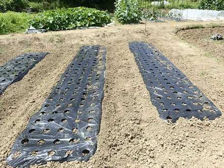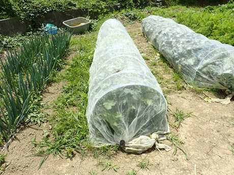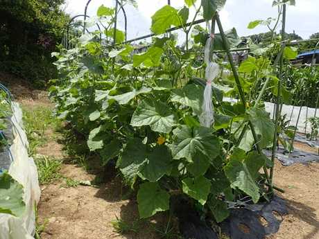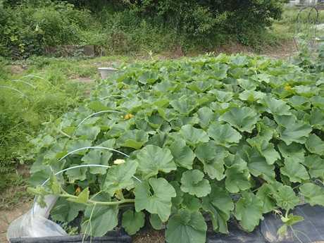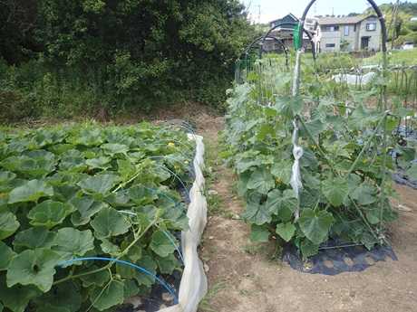 (第1弾カボチャ苗植え付け地 × 第2弾キュウリ苗植え付け地)