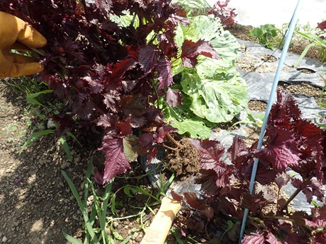 こぼれ種から発芽した「赤紫蘇」が大きく育っていたので・・