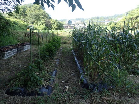 (トウモロコシ抜き苗植え付け地 × ズッキーニ苗終了地)