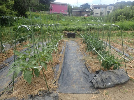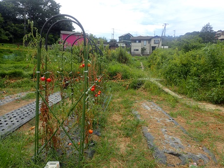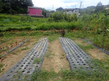 (第2弾トマト苗植え付け地 × つるなしインゲンお片付け地 )