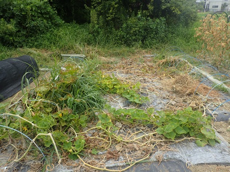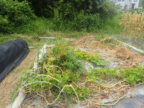 (第1弾カボチャ苗植え付け地 × 第2弾キュウリ苗植え付け地)
