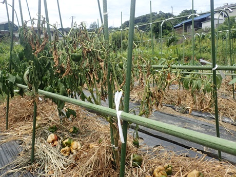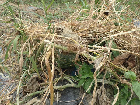 周りの野菜に感染させないためにも根っこごと、早めに発病株を除去することが大切。