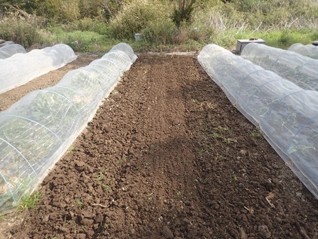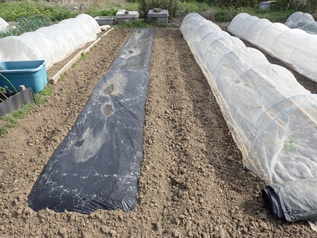 (第2弾祝雷(シュクライ)苗お片付け地 × 第3弾ズッキーニ苗植え付け地)