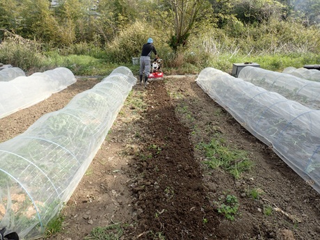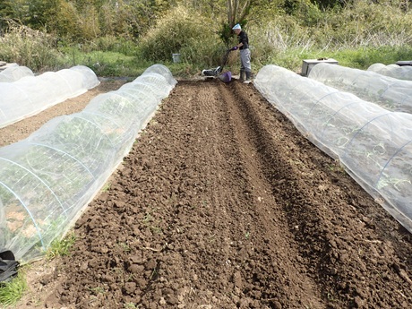 マルチを剥がしたら~耕運機をかけてもらいましょう!