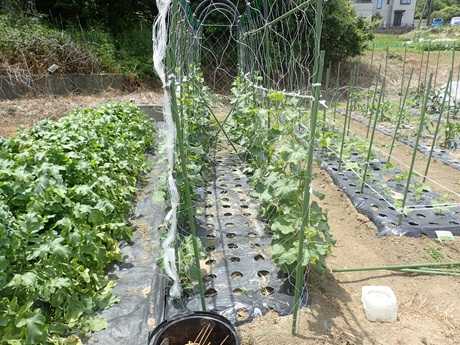 第1弾キュウリの支柱立て&ネット張りをしたのは~ 5月初旬頃