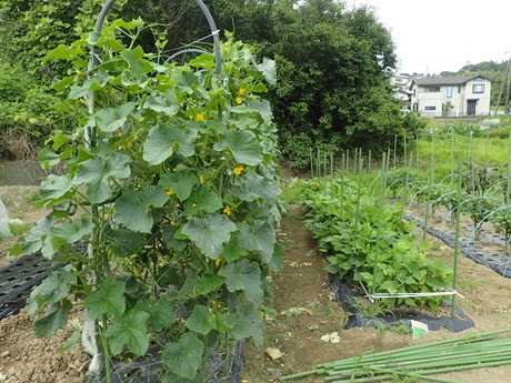 第1弾キュウリの支柱立て&ネット張りをしたのは~ 5月初旬頃