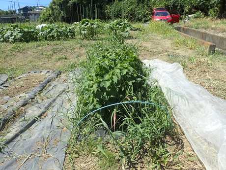 (こぼれ種から発芽した青シソ苗植え付け地)