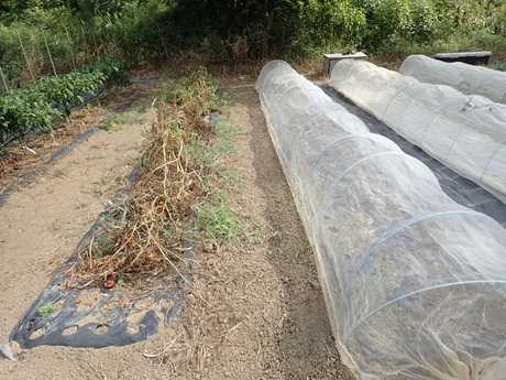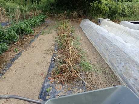 (第2弾トマト苗お片付け地 ×秋採りトマトわき芽苗植え付け地)