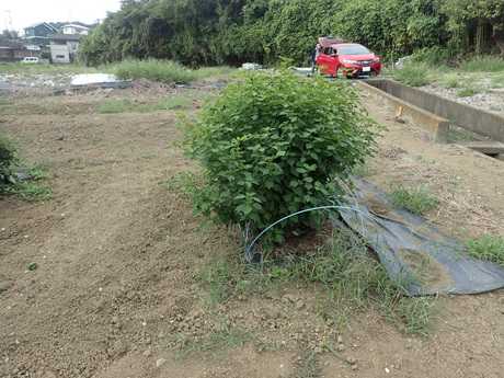 (こぼれ種から発芽した青シソ苗植え付け地)