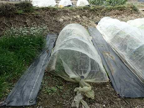 ・春まき栽培:低温期にはビニールトンネルで保温して種まき育苗し、