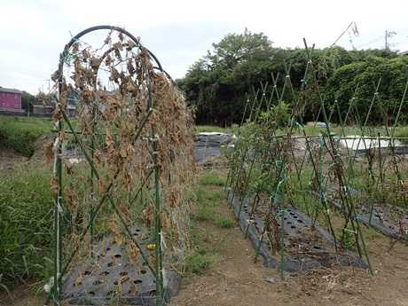 (トマトわき芽苗植え付け地 × 第2弾オクラ種まき終了地 )
