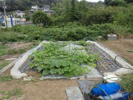 (ゴーヤこぼれ種発芽地 × 第3弾ズッキーニ苗お片付け地)