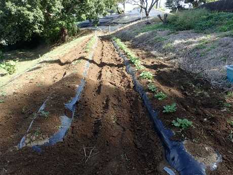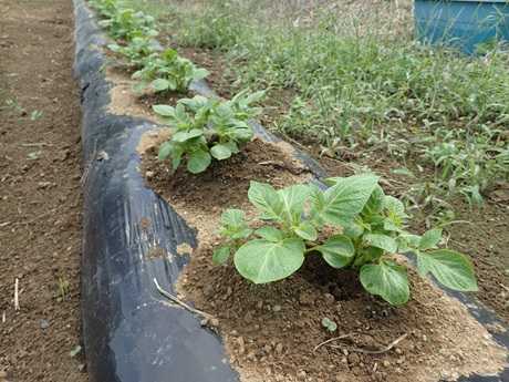 <秋ジャガイモ発芽確認&土寄せ>