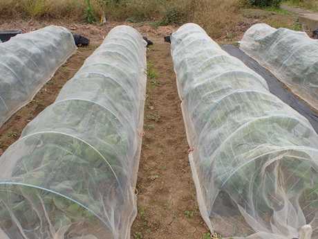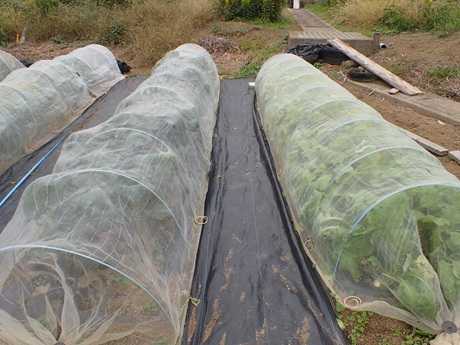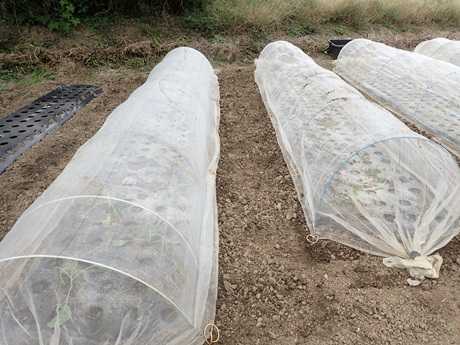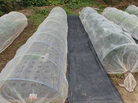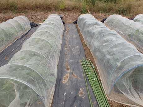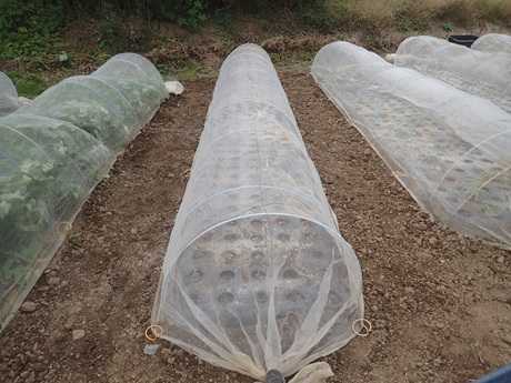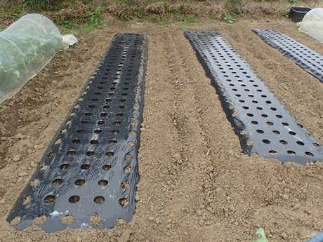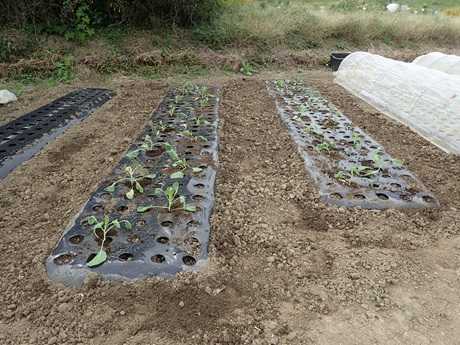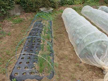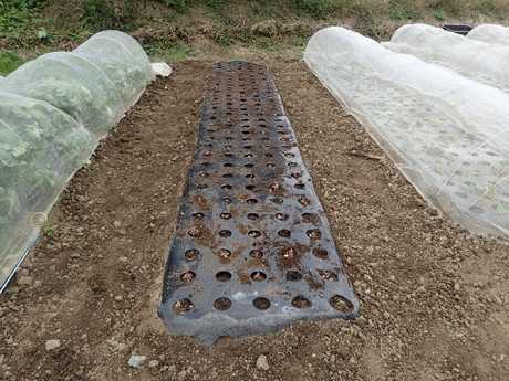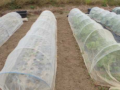 (にんにく球&タマネギ球植え付け地 × 第3弾カリフラワー苗植え付け地)