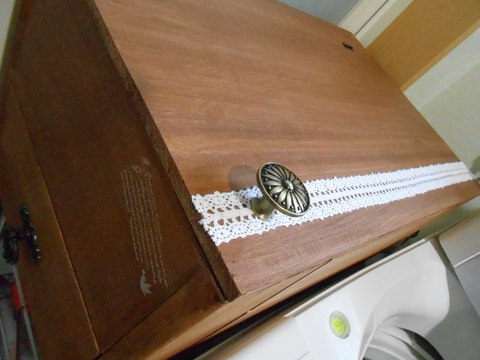 2013年3月14日 取っ手を付け替え、レースとスタンプを施しました。