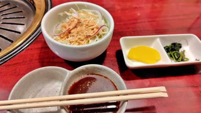 焼肉ランチに行ってきました平日限定ライス・スープ・サラダ・ナムル・デザートorドリンク付きそんなにがっつりは食べたくないけどちょっとだけ焼肉食べたいときに年1くらいで行ってるお店に行ってきました焼き肉のはや焼肉ランチサラダはどうしてあんなに酸っぱいドレッシングかけるんだろうねちょっと 貧弱に見えますが1100円なんで許してこれにスープとデザートとご飯お替り自由がつきますまえまで 野菜もついてた気がするけど気にしないぞ違うコースだったのかな?デザートはプリン ジェラート わらびもちですこれくらいでちょうどいいかもちょっと思ったんだけどなんでサラダのソース めっちゃすっぱいのをかけるの?なんか台無しなんだよねぇっていつも思うのあのソース好きな人いてるのかなぁううーん苦手だわ久しぶりだったのでまぁまぁよかったなと思っておきます焼くのが楽しいという体験をしに行ってると思えばいいか(*´∇`)ノシ