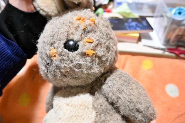 ピーターラビットのぬいぐるみ補修しました私が小学生の時に買ってもらったピーターラビットのぬいぐるみが…気が付いたら穴だらけになってたのでサクサクと補修しました気が付かずにごめんねそういえばいつの間にかシャツ?(羽織物)もなくなっているからそのうち作りましょう水色だったかな布があるかどうかが問題だけどまぁ何とかしましょう柄物でよければすぐできそうですよ時々洗濯はしてるのに放置してたみたいですねねこさんの仕業じゃないようですボディも 中身が出てきてるごめんね画像検索しても同じ子が出てこないんよねみんな捨てちゃったかな今はこの感じの顔じゃないんですよねー時期によって違うんでしょうねざくざくと縫い込んでいったらなんとなくですが きれいになったのでよしとしましょう꙳✧˖°⌖꙳✧˖°⌖꙳✧˖°⌖꙳✧˖°⌖꙳✧˖°⌖꙳✧˖°⌖꙳✧˖°画像検索しても出てくるのは目の周りが白い子ばかりなんですよねこの子は耳含まず30センチ超えている感じの人形で当時5500円くらいしていたような気がします(あいまいな記憶)ファミリアというお店の片隅にピーターラビットのコーナーがあってそこで文具とか 人形とか買ってもらいました長持ちするねぇありがとうピーター服はいつか作るね(*´∇`)ノシ*ファミリアを入れて検索したら似た子が出てきましたっていうか 売られてるのね…目の周りが白くないから 同じ商品と思います年季ものなのに未開封とはどういうことやろと思いながら見てました 放置されてたのね