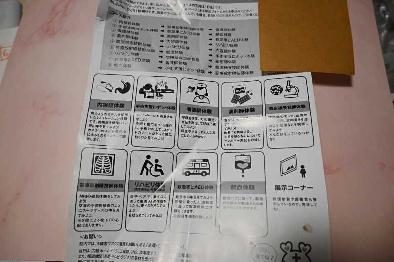 スーパーに置いてあるチラシが気になったのでもらってきたなんかすごいことできるんですけど小学生限定らしいある病院で 人数限定で体験できるもの内視鏡体験 手術支援ロボット体験 看護師体験 薬剤師体験 臨床検査技師体験診察放射線技師体験 リハビリ体験 救急車とAED体験 献血体験パット見たときやってみたいって思ったんだけど小学生ではないし小学生の子供もいないから体験できないやんこういうのって大人にも知ってもらったほうが絶対いいのにって思いながら見てました「看護師体験 小学生」で検索したらいろんな病院でもやってるみたいこういうの広まれば子どもが積極的に医療へ関心を持てたりそういう方向目指すきっかけになったりするのになと思ったり社会見学で病院って行かないもんな行ったほうがいいよって思うけど邪魔だもんな・・・なのでこういう機会に行ける人は行ってみたらいいなと思いました私もちょっと学びたい(*´∇`)ノシ