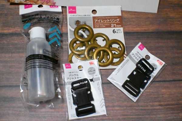 こういうイベントはリュックサックとか大きなトートがあれば楽かなって思ってリュックサックを買う計画を立ててみたんだけど1回のイベントに今後使うかわからないリュック買うのもいやかもって思い始めてリュックの作り方を調べてみた(作るのはいいらしい:私)そしたらなんとタイミングよく大きなトートバックから作ったよという動画があってみてみたらめっちゃ簡単そうだったのでやってみることにした材料は100円均一でそろうアイレットリングがあればいいなーって 思ってダイソー行ったらあったバックルアジャスターは 持っているひもが短いから2セット液体入れは あとでファイテンのメタックスを入れるから購入穴は ハサミで開けるよオレンジは 穴 持ちやすそうなところに印付けてあなあけてリングをはめ込むカバンの中でひもの長さ調整実際は外でも調整してるよひもは1.5mx2本 必要切りたくなかったからそのまま使った 1.5では足りない穴開けてリングはめ込んだら ペンチで固定紐通す裏面こんな感じ外でも長さ調整 外から見たらひもは上だけ中にポケットも作った今まであったひもはそのままにしておいたら2WAYになるんで便利かな長くなったひもはベルト通しで合体させたり長さ調整させたりするだけ手縫いも何も穴開けて紐通しただけポケットだけ頑張ったって感じ使わなかったカバンがリメイクされました (*´▽`*)このあと入り口をスナップボタン式にしようとしたらどちらも凸で縫い付けてしまってて笑いました適当でいいかなと思って雑に縫い付けてるのばれますね行く前から疲れてるということで何日か前にかばんも作れたんでOKでしょうでも持ち物多いよねぇ(*´∇`)ノシ