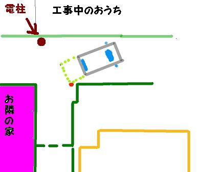 昨日の日記に書いたように・・車庫に印をつけました(赤いところに線つけました)