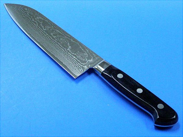 皆さんは料理に使われる包丁ってどんなの使われていますか?うちは、スーパーで売っている極普通のステンレス包丁です。(安物w)切れ味ってそんなに良くないんですよね~。居酒屋、焼き鳥屋でバイトをしていた時分の話ですが、両方ともミソノって所の包丁を使っていました。そんなに高くないのですが、切れ味が良く、研げば元の切れ味が戻ってくるそうです。スーパーに売っている包丁って、余程キチンと研がないと、一番最初の頃の切れ味って戻らないらしいですね。「使い捨て」が基本らしいです。で、最近包丁の切れ味がすこぶる悪い。切れ味の悪い包丁ってのは大変危険です。切れ味が悪いから、余計な力が入る。余計な力が入るので、肉を切った後とかで手に脂が付いている時とか、グリップが滑って大怪我をしかねません。一見、切れ味の良い包丁ってのは危ないように見えるのですが、切る作業に余計な力が入らないので包丁の操作に集中できる為、逆に怪我をしにくいのです。(知ってますよね^^;)なので、少し高くても良い包丁を購入することをオススメします!という我が家は安い包丁だったりして…今度の給料日にはお目当ての包丁を買いたいと思っています。最近、おかあちゃんも指を切っちゃったので^^;お目当ての包丁とは…ダマスカスの包丁!ダマスカス包丁とは多層鋼で金属なのに木目らしき模様のある、不思議で美しい包丁です。下記リンクの包丁の拡大画像です鋼の包丁は切れ味が良く、切れ味が落ちても研げば元の切れ味に戻るので、長く使うのには適しているのですが、いかんせん錆やすい…でもこのダマスカスは当然切れ味は良く、切れ味が落ちにくい、落ちても研げば元の切れ味、しかも錆びにくい!なんて便利な包丁なんでしょう!包丁の切れ味があまり良くない、買い替えしようかと思っている奥様(旦那様w)是非一度使ってみてはいかがですか?ニッケルダマスカス業務用三徳包丁送料無料