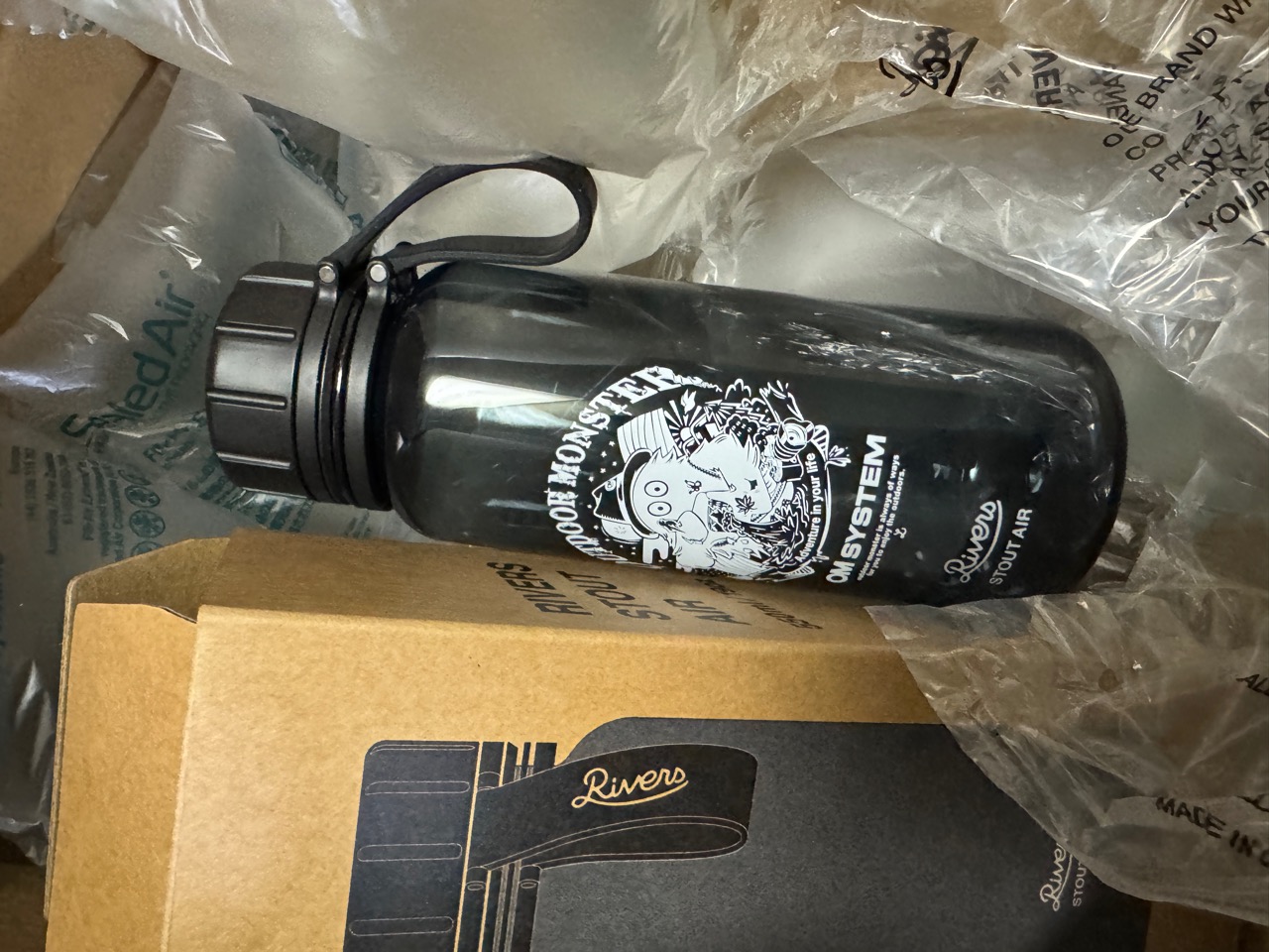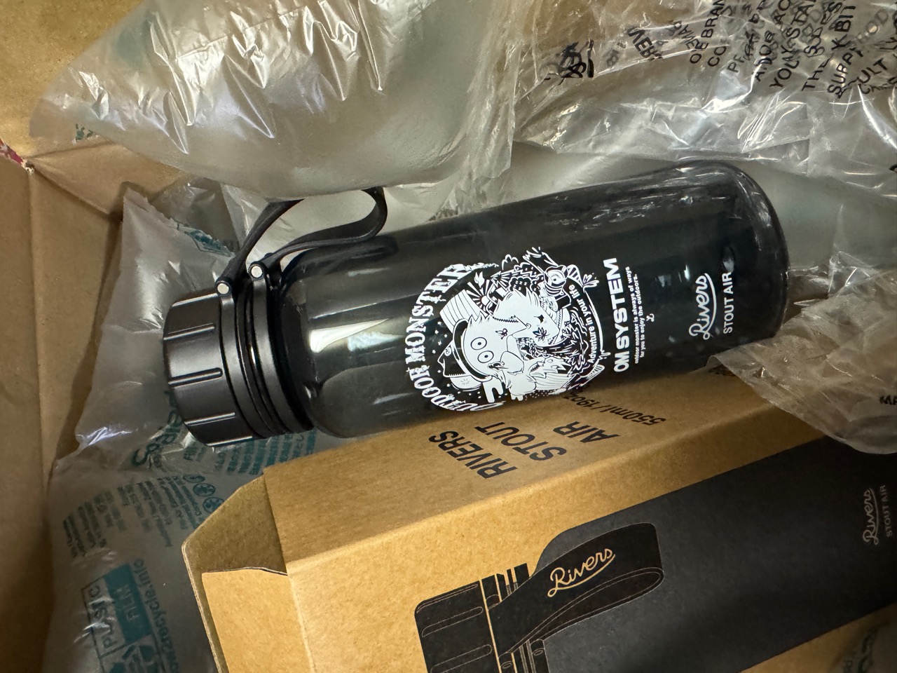 【期間限定10%OFF!】 OM SYSTEM × OUTDOOR MONSTER マルチユースボトル RIVERS リバーズ スタウト エア クリアボトル 550ml 1000ml ウォーターボトル 軽量ボトル 水筒 プラスチックボトル メモリ付き 内蓋 飲みやすい 洗いやすい 広口 パッキンレス アウトドア