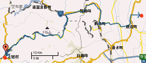 日記記入ページを開き他のコトをやってるうちに忘れそのうち面倒になって書かない…日が続いております。ネタはあるんだ。ネタは。*ネタその壱誕生日が過ぎてました。ぴーの。orz彼のばーすでーは5月1日です。貰ってきた日の体重から逆算してワタシが決めました。うちにきた当初は130gだったのが今や5kg以上の巨体に成長しました。なんやかやでトラブルが多くて手術も2回やりました。そんな彼も、ついに3歳になりました。いやぁ…感無量ですね。っていう日だったはずなんだよな。おっかしーなぁ…そういえばはるかちゃんも☆も過ぎてますね。この場を借りて「おめでとう」と言っておきましょう。今更(笑)でもってもしかしてうりゅふ氏やさりーさんは5月じゃなかったかしら。今のうちに「おめでとう」と言っておきましょう。だって忘れるし(笑)いろんなひとの誕生日を覚えてる人っているけども尊敬に値するね。単なる数字の羅列はワタシの脳がもっとも苦手とする分野です。だから牛番も覚えらんないんだって…うん;*ネタその弐ADSL導入します。どうやら来月あたりやっと、ココもADSLのエリアに入るようです。ネットジャンキーを自称するワタクシたとえあと一年後にはココにいなかろうが多少の工事費がかかろうが早いほうをとりました。基本使用料そのものはADSLの方が安いしモデムはレンタルなんで買わないでもいいようだしトータルで見て、こっちの方が断然イイ。とは言っても局から結構遠いんで、そんなに早くはないのかもしれませんが今よりはマシだろうさ…これで今まで画像が多くて敬遠してたHPにも行けるようになる…ネトゲも再開できるかもしれない。何よりネットサーフィンの時間が短縮できる=睡眠時間が増えるあぁ、楽しみ・・・。*ネタその参ドライブがエスカレートしております。何かあっても何もなくともストレスが溜まっていようが溜まってなかろうがどっかにふらっと行ってしまうようになっちゃいました。。。あんまり良くない傾向です。そんなに普段からやってたらいざストレスに晒された時の緩衝材にならなくなってしまうじゃないか…ガソリンも高くなっておるしうむ・・こないだは仕事終わってからなんと占冠まで行ってしまいました。走行距離は確認し忘れたんですが地図で見るとだいたいこんなカンジです。結構遠い。こんなかんじ。19時ちょい過ぎに家を出て軽く買い物して行って帰ったら23時デシタ。もう寝る時間じゃ…ちなみに占冠で何をしたかというと・・・・道の駅のトイレに行った・缶飲料を自販機で購入した以上二点でございます。ホント何しに行ったんだ(笑)ちなみに道すがらエゾシカにたくさん出会いました。しかし奴等車が近づいてもなかなか逃げやがらないくせに携帯カメラを起動すると逃げていくという嫌がらせに近い行為を繰り返してくれたため写真におさめることがデキマセンデシタ。りっぱな角もったでかいのがいましたよ。18歳のミニカじゃ確実に負けるでしょう。そのうちどんどんエスカレートして「仕事が朝4時半だから、それまでに帰ればいいや」「睡眠は昼寝で補えばいいや」とかなったらどうしよう。。。誰か止めてくださひ・・・;