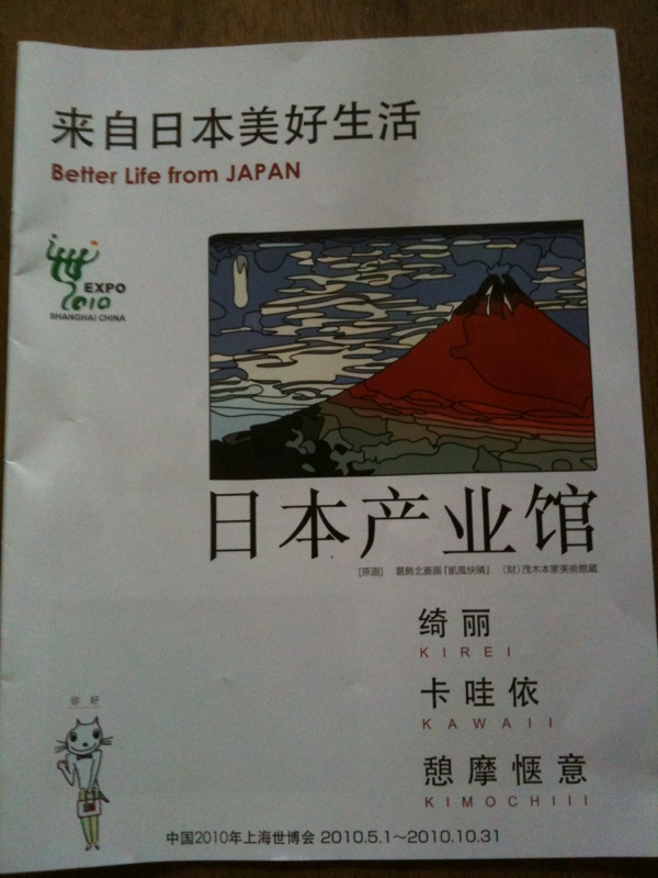 なんとなく寂しい気持ちを奮い立ち、部活で7時にでかけた娘を送ったあとは、お洗濯やお布団をガンガン干した。流しを磨いて、ガスコンロもゴシゴシ。じゃ水場を集中的にお掃除しましょかと、お風呂、洗面をこれでもかというぐらい磨く。あー、さっぱり。じゃ、食品雑貨の棚を整理しよう。乾物が多い我が家。素材からダシをとるから仕方ないのだけど、どうしても場所をとる。安全な美味しさを求めるからゆえ。と、あれれ、夏休みのお土産の袋。うん、これは上海万博のじゃない。あー、ご近所さんからのだ。ついつい棚に置いて忘れていたんだ。袋の中は、お菓子とパンフレット。パンフはどうも、上海万博の日本館の物らしい。知っている企業名がずらり。商標の他はほとんど中国語。はい、全然読めません。読めないのだけどね、こういうお土産ってなぜか嬉しい。これをくれた彼女も同じタイプだから、私が喜びそうな物をよくご存知じ。お菓子は、抹茶味は分かったけれど???確かもう一つ、パンダクッキーがあったっけ。たべちゃったのね、我が家のハイエナちゃんたちが。五年前には、愛知万博が開催された。お手軽な世界旅行、もちろんパスポートを手にした。開催2日目から足を運び、通算20回以上は通い続けた。メインは春先に見て回ったから、真夏なんかは夕涼みのついでに晩御飯を食べに行くなんてことをしていた。まだ、今の仕事につく前のこと。時間的に余裕があった頃の話。瀬戸会場が大好きだった。日本の四季を、美しさを、すぐ目の前で踊りで表現してくれた日本館。意外と自然豊かな愛知を、美しい映像や歌声で魅せてくれた愛知館。今ここは、海上の森(かいしょのもり)を散策する自然観察施設となった。自然に関する本を置く、静かな時間を楽しむことができる場所。長久手会場にあるサツキとメイの家は、万博が済んだよく年に行った。どこかの木の枝に、猫バスが停まっている気配。夏の終わりの頃のこと。いま、まだあるのかな?来月に、現在、愛地球博記念公園、通称モリコロパークに、新しい施設がオープンする。詳しいことは知らないけれど、自然をテーマとしたアートがあるらしい。我が家から車で30分。スケート場に観覧車、また、楽しみが増えた。上海万博にも行こうかなって、当時は何げなく考えていた。行くなら秋だねって。結局時間が許してくれなかったけれど、まさか、日中情勢がこんな状態になるなんて。力で話がつく時代はもう終わりにしないと。同じ星の上に住んでいる者同士。足元ばかりを見た行動に辟易する。世界が一つになる万博。どこかを悪者に仕立てる幼稚な考えが通らない世界を望みます。