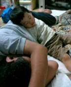 じいじの腹まくらです。ゆりかごみたいに動いてきもちよさそうでした(^-^)
