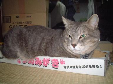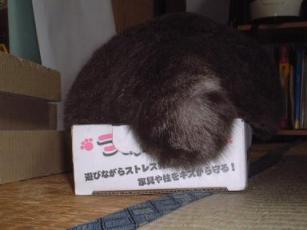 昨日はみなさん暖かいお言葉ありがとうございます。早く治るように頑張ります♪今日は24時に帰ってきたので〔めざせ!就寝 1時〕だったのですが皆さんのところにお邪魔しているうちにあっという間にこんな時間...(-_-;)ちっと開き直ってまた夜更かししちゃいました(T_T)今日はまたいちだんと寒かったですね~(><)雪も降ったりして...たまはまた今日もお留守番でした。 最近、私たちが帰ってきて遊んでもらうのを楽しみにしている様子。私たちが入ってくるなりお帰りも言わず、ダダダッーーっと走っていすの下にそしてスキを見て足元に来たかと思えばまた走って3段BOXの上に・・・最近のお気に入りは【快適ねこ生活】で買ったつめみがき。つめをみがくのは普通の使い方。たまは最近、外側の箱がお気に入りのようです。中身を出していつもこうやって入ってます。間違ってると思いません? 使い方が...しかもそのまま遊びます(*^▽^*) デジカメのひもを取られてしまいました~(^o^;) 画像は【つめみがきのはこバスごっこ】です♪