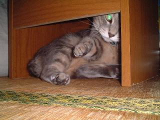 今日は仕事が休みだった為、夜更かしし過ぎて朝起きられませんでした~。起きたらお昼すぎ!! 今日の予定が台無しです。 (ToT)ガ~ンなので今日は何もしない事に決めました~。 ホントに~?たまが子猫時代の写真を見ていたら変な顔の写真があったのでご披露しま~す。 (^m^)ププッ♪ 変な顔~~ 今とはちょっと顔が違いますね~♪