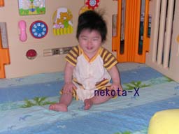 いただいたコメントの返事にも書かせていただきましたが、本日は、ジュニアのお座り、ライブで見ることは適いませんでした見てると、なかなか座らない。目を離すと、いつのまにか、座っている。完全にジュニアにからかわれた1日でした・・・^^;まぁ、座るといっても、足がまだ上手にたためないので、見た目には不恰好なんですけどね。さて、今日ですが、嫁さんが、ママ友たちと約束があるとのことで、近所の地域ケアセンターにジュニアと遊びに行きました。そこは、乳児や幼児を持つママさんたちが、自由に遊びに行ける場所なのです。一応、僕も付いて行きましたが、ママ友たちが揃ったところで、早めに退散してきました。男がいたのでは、話せない事ってありますよね^^;しかし、ママ友さん、うちの嫁さんに比べて、若い若い。思わず、邪悪な心が芽生えてしまいましたすまん、ジュニアよ。でも、君も、大人になったら、わかるのだ!ということで、明日こそ、ジュニアのお座りをライブで見たいと思います。