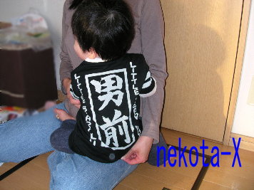 って、別にジュニアが不良になったわけでは、ありませんあ、ある意味、最近はなんでもかんでも放り投げるので、態度は悪くなっていますけども・・・^^;実は、すっかり秋めいたこともあり、ジュニアに洋服を買おうということになり、いろいろ探しているうちに・・・・こんなもの買ってしまいました。ETK(イーティーケー)ドラゴン【スカジャン】ベビータイプ今回は、「ベビー用品子供服のぐーちょきぱぁ」さんで購入しました。いや~、どんな趣味なんやって、突っ込まれそうですが、これが実物を見ると、なかなかよいのです。背中の龍に、龍神(って、そもそも何?っていう突っ込みはなしね)の文字、また色合いも、意外にブルーがよくて、爽やかイメージです。どうも、「男前」といい、龍や鷹の装飾といい、自分が普段絶対に着ることができないようなものを、ジュニア用に買っているみたいです。嫁はあきれていますが・・・でもでも、格好いいと思うんですよね。秋の行楽シーズン、これをジュニアに着せて出かけたいと思います。「男前」もそうですが、龍神スカジャンを着たジュニアの写真、いずれ載せますねで、その代わりに、最近のジュニア画像です。すっかり生意気になりつつあるジュニアです。ま、パパの趣味で洋服を選べるのも、あと少しですので、それまでは、ちょい不良ジュニア路線で行っちゃおうと思いますジュニアよ、こんなパパを許しておくれ!