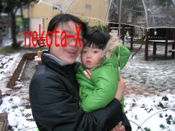 って、ジュニアでございます。風邪で鼻水が止まりません。本人はうまく鼻をかむことができないので、嫁が綺麗にしてくれていますが、気がつけば、鼻水がバぁ~。息もままならないのでしょう。ここ数日、夜中も苦しくて起きちゃうみたいです。それに朝見ると、顔中、はなでテカテカだし・・・まじで、つらそうです。ということで、この3連休、あまり遠くへ遊びに行けそうにありません。今も、おとなしく昼寝中です。なので、先週の大雪のときの写真です。本人はどうしても雪の中に立ちたくないらしく、嫁が抱っこ写真になりました^^;近所の公園です。本人、楽しそうではないですよねいずれにしても、まずは風邪を治して、体調万全になってもらわないとね。早く元気になれ~!!
