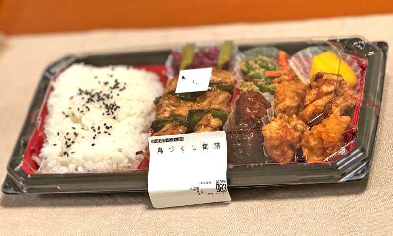 夫がお盆で里帰りのついでにデパ地下でお弁当を買ってきてくれました。私はお盆はついていきません。義姉達も来ないので、お盆の時は好きなように過ごさせてもらっています。鳥づくし御膳 983円(税込) 鳥芳 国内産鶏肉・国内産米使用「ボリュームがあって美味しそうだったし、量の割りにお得な価格だと思ったから買ってきた」と夫。夫の言う通り、私にはお腹いっぱいになる量でした。唐揚げ、つくね、炭火焼きの焼き鳥と鶏肉料理のバリエーションにとんでいて、食べて楽しいお弁当です。山椒と七味唐辛子がついていました。唐揚げに山椒をつけて、焼き鳥に唐辛子をつけて食べてみましたが美味しかったです。以前食べた九州の唐揚げに柚子胡椒や山椒がついて美味しかったので、食べながらそれを思い出しました。いんげんの胡麻和えやさつまいもの甘煮も美味しくて、今回のお弁当は「鶏肉料理もなかなか良いなぁ」と満足できました。鶏肉料理にハマりそうです。