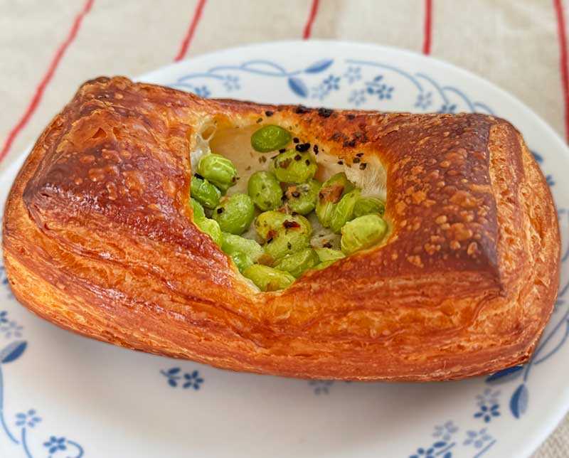 阪急オアシスでパンを買いました。枝豆ガーリック 139円(税抜)ディニッシュ生地に黒胡椒、ガーリック風味の枝豆がトッピングされています。ふわサクっとして、甘くなくて美味しいです。脂っぽさもそれほど感じず食べやすいです。クッキーアンドカスタード 159円(税抜)やや厚切り山形食パンを縦半分にカットし、カスタードクリームを挟んで外側にクッキー生地をかけたパンです。美味しいです。こちらはパン生地のふんわり感がちょうど良くて、クッキー生地が染み込んだ端部分との食感の差が気に入りました。少し大きめなので2人で分けて食べました。半分に切ると美味しいカスタードクリームが中に挟んであります。外側のクッキー生地も美味しいです。中のパンに甘みがない点がとても良くて、甘さのオンオフがしっかりしてるので食べやすくてよかったと思います。カマンベール&ゴーダチーズ 179円(税抜)2種類のチーズを使ってるそうです。こちらもふわっとしてさっぱりした美味しいパンです。甘くないので気に入りました。大きめなので、こちらも2人で分けました。中にはチーズが入っています。チーズの量が控えめなところも好印象です。食べやすくてこちらも大変気に入りました。二層仕立てのクリームパン 159円(税抜) こちらもフワフワのクリームパンです。中のカスタードクリームも美味しくて満足しました。どれも食べやすい風味で、くどくないのでまた買おうかなと思っています。「この価格で、美味しいのはすごいね」と夫は阪急オアシスのパンを再評価していました。