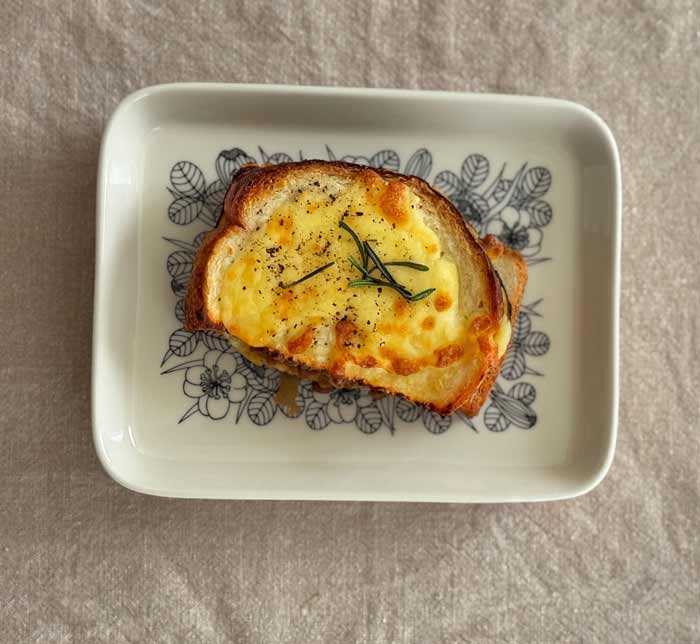 夫が東京出張に行くと、最近買ってくるようになったのがこちらのベーカリーショップのパンです。エキュート品川にある、VERACE PANETTERIA GASTRONOMIA (ヴェラーチェ パネッテリア ガストロノミア)というベーカリーショップ。今回はランチにも最適なおかずパンとチョコが中に入ったパンオショコラを買ってきました。ムッシュ・メルト 1個 600円(税込)間に具がサンドされたお食事パンです。上にはチーズとローズマリー、ブラックペッパーが乗っています。冷蔵庫に入れて、翌朝に食べました。最初にレンジで600w、40〜50秒くらい温めて中を加熱してからオーブントースターへ。アルミホイルでふわっと上下を包んで、少し時間はいつもより長めに焼きました。トースターでやくと、食べるときにチーズとローズマリーがほんのりと香ります。ズッキーニだと思います、中に薄切りが3枚ほど入っていました。やや大きめミンチが中に詰まってます。お肉はトマト&スパイス&塩が効いた風味で美味しいです。いわゆる一般的な甘めミートソースではないところが大人っぽくて、糖質も低そうで嬉しいです。以前、別の人気店で創作料理のような1個の価格が高めのパンも食べたことがありましたが、そちらは色々な食材を混ぜすぎて「一体何の味を伝えたいのかわからない」惣菜パンでした。このムッシュ・メルトは味がごちゃごちゃしていません。それぞれの素材がちゃんと独立していて、各素材の良さを引き出しています。シンプルだけど、しっかりと味を伝えている点が美味しさをストレートに感じさせるんだろうなと思いました。食パンもちょうど良い厚みで食べやすく、食べ応えもあります。とても美味しい惣菜パンでした。※お持ち帰り用ビニール袋は一枚20円(税込)です。ヴェラーチェ パネッテリア-ガストロノミア/ecute