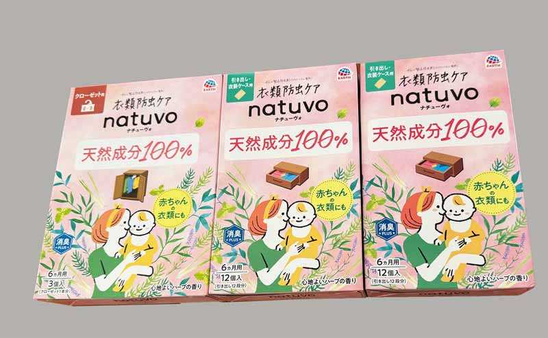 天然ハーブ素材の防虫剤、ネットで購入しました。クローゼット用一つ、引き出し用を二つ買いました。衣類防虫ケア natuvo ナチューヴォ 引き出し用 衣装ケース用 防虫剤(12個入*2個セット)【ナチューヴォ(natuvo)】[防虫 ダニよけ オーガニック 衣類 洋服 天然 衣替え]引き出し用は紙製のパックに防虫剤が入ってます。直接紙に鉛筆で取り替え月を書けるようになっています。衣類防虫ケア natuvo ナチューヴォ クローゼット用 防虫剤(3個入*2個セット)【ナチューヴォ(natuvo)】[防虫 ダニよけ オーガニック 衣類 洋服 天然 衣替え]natuvoのクローゼット用はハンガーまで紙製です。数年前、期間限定品で可愛いキャラクターとのコラボ商品もあったのですが、その時も紙製でした(もしかすると別メーカーだったかもしれませんが・・・)。クローゼット用は3個入ってます。数年前に私が購入した頃より、ちょっと便利になっていました。楽ちんお知らせと言うQRコードがついていて、これをスマホでかざすと自動的にカレンダーに取り替え予定を書き込んでくれる便利なサービスです。これはいいですね〜。忘れっぽい私でもちゃんと取り替え時期にお知らせが来るので忘れず買うことができそうです。まだ開封してないので、使っていませんが。自分の引き出しにはハーブ系とピレスロイド系を一緒に入れている・・・今回は子供部屋用に買いました。自分たちの寝室+クローゼットはトップバリュのベストプライスやその他メーカーの防虫剤を使ってます。ピレスロイド系だったと思いますが、特に気にしていません。その時の気分でハーブも買っていて、混在してます。同じ引き出しにハーブ系と化学成分系を一緒に入れてる時点で使い分ける意味がないですね・・・。そういうところはアバウトで全然気にしない私なので、自分には結構テキトーです。衣類用防虫剤クローゼット・洋服ダンス用 無香料タイプ/ベストプライス・トップバリュムシューダ 引き出し・衣装ケース用 衣類 防虫剤 防カビ剤配合 無香タイプ 1年間有効(32個入×3箱セット)【ムシューダ】小さい頃、たまに喘息になった子供で、蚊取り線香もぐるぐる巻きタイプの商品は、煙で咳が出る子なので使えませんでした。全く関係ないと思いますが防虫剤は一応、子供にはハーブ系にしています。