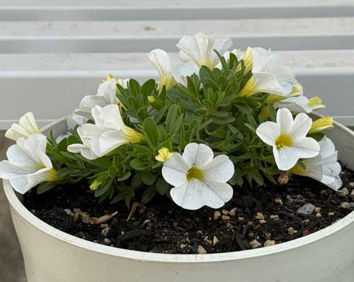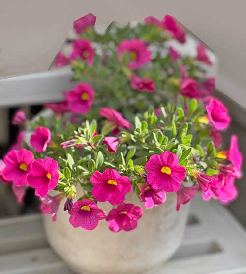こちらはDCMの花ではありませんが、似ているホワイトのカリブラコアとして載せました スマイル