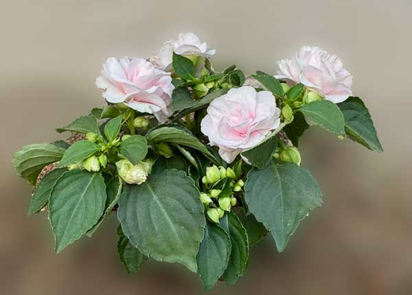 インパチェンスの種類で、カリフォルニアローズ・フィエスタの改良品種、フィエスタプラスです。
