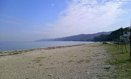 行橋~別府100kmウォーキング その4行橋市駅前から、84km近く歩いて、最後の難関赤松の峠を越えました。遠くに、高崎山と別府湾が見え、安堵の気持ちになります。しかし、峠を越えて、別府湾沿いの道に出るまでが長い。おまけに、天気もよく汗ばむ陽気で疲れも増します。早くゴールへと気持ちは急ぐ割になかなか進まない。我慢の末、ようやく堀の交差点に出ました。☆湾岸道路出合(堀交差点13.29)交差点のすぐそばの空き地で、再び休憩です。食欲もあまりないのですが、菓子パンを押し込みます。あと、もう少しと言い聞かせて歩き始めます。しかし、歩き始めても再び足の鈍痛が気になって、1km歩いて再び休憩します。しびれるとまではいかないものの、思うように足が進みません。これが、みんなが言う、別府湾地獄というものなんでしょうか。峠越えの緊張感が薄れた後に、平坦でまっすぐな道に地獄がある。制限時間までは十分時間はあります。進んでは休む作戦に切り替えです。☆豊後豊岡駅通過(14.24) 3kmを休憩を入れて1時間かけて歩いています。☆別府湾の白い目印 別府湾ロイヤルホテル横通過(14.32)豊岡駅を過ぎても、休んでは進むペースは変りません。座り込めそうな場所があれば、休んで足の回復を待つ。昨日見た、元気に別府湾を歩いていた人たちは余力を残していてすごいものです。それに比べると、歩いては休みの私の状況は、明らかに違います。残り10kmは切っているものの、普通なら2時間の距離がとても長いのです。☆いよいよ別府市に入る 関の江付近(14.59)昨日の朝見かけた、元気に歩いていた100キロウォークの皆さんと同じ場所を、今、歩いているんだと思いながら、元気をもらいながら歩き続けます。☆関の江海岸から見る別府湾(15.00)日出町から別府市にはいって、幾分ペースが上がります。こまめにとった休憩で、少し回復基調です。☆フェニックスの並木亀川古市付近(15.06)もうすぐ、亀川駅が近いと急ぎます。少しですが、最後の坂と言っていい、亀川パイパスを前にして、小休止します。坂への充電です。☆ぐっと高崎山が近くなってきました。一気に亀川バイパスを登りきります(15.25)いつも妻や娘と歩くお気に入りの上人が浜がどんどん近づきます。坂を下りても休むことなく、別府の市街地へと足を進めます。美しい公園の、上人が浜公園に到着。ベンチでちょっと長めの休憩をとりました。妻に連絡し、別府まで車で迎えに来てもらうことにしました。待ち合わせは、別府タワー前に17:00ということに。残りは、およそ4km弱です。時間を設定すると、緊張感で力が出ます。いざ、出発です。☆17時までのゴールをめざして、上人が浜公園通過(16.05)西日を避けて、道路の南側を歩くことにしました。直射日光での疲労を少しでも防ぐためです。17時までに着かなければとの思いは、最後のラストスパートへと変りました。今まで、休み休みだったモードが、いきなりトップギアに・・・。休みなしのノンストップで歩き続けます。こういう時は、足の痛さも忘れてしまうようです。☆別府国際観光港前通過(16.20)いつもならば、緑が綺麗な海浜公園側を通るのですが、休める場所がたくさんあるので、誘惑を避けて、あえて、店舗が続く南側を歩き続けます。別府警察署の手前で、道が少しカーブします。カーブが近づくにつれて、別府の中心街がうっすらと見えてきます。参加者の皆さんがゴールを確信する瞬間ですね。タワーがいとおしく感じます。☆遠くにゴールの別府タワーが見えた(16.25) 残りは1.5km程度、そのまま一気に飛ばします。この直線は、別府タワーがみるみる近づいてくるので、ゴールが近づく実感があります。田園風景では遅く、市街地では早く歩いている錯覚は確かなようです。周りの風景がどんどん変るので加速感が違います。☆ゴール直前の別府タワー 的が浜(16.41)実際の100kmウォークのゴールは、この先の交差点を右折して、海門寺公園がゴール地点ですが、妻の車の事を考慮して別府タワーをゴールとしました。到着時刻は、16時43分総時間は、行橋駅前から23時間23分21秒でした。平均の時速は、休憩時間を入れて、4.3km。成績からいえば、いたって完歩者の普通のレベルです。それでも、完歩できたことがうれしい限りです。この大会では、20時間を切るツワモノがたくさんいらっしゃいます。最短時間は、13時間9分と驚異的な時間です。今年は、残念ながら大会にエントリーしないままの、未公認のチャレンジでしたが、来年は、ぜひ、エントリーのうえゴールをめざしたいと思いました。歩いてしまえば、あっけないものですが、歩くことの不思議な魅力を再認識したウォークでした。まだまだ、奥は深いですね。(^^)行橋~別府100kmウォーク全行程本当の大会の参加者の御報告は、行橋~別府100キロウォークで、検索してみてください。たくさんありますよ。単独歩行ですが、勝手に参加したような気分になれました。七曲の坂でお会いした主催者の方々に深